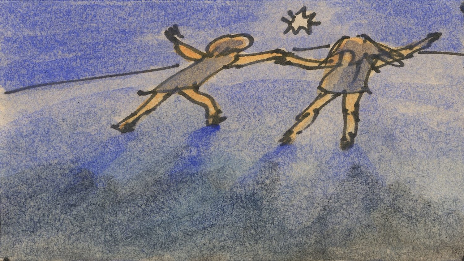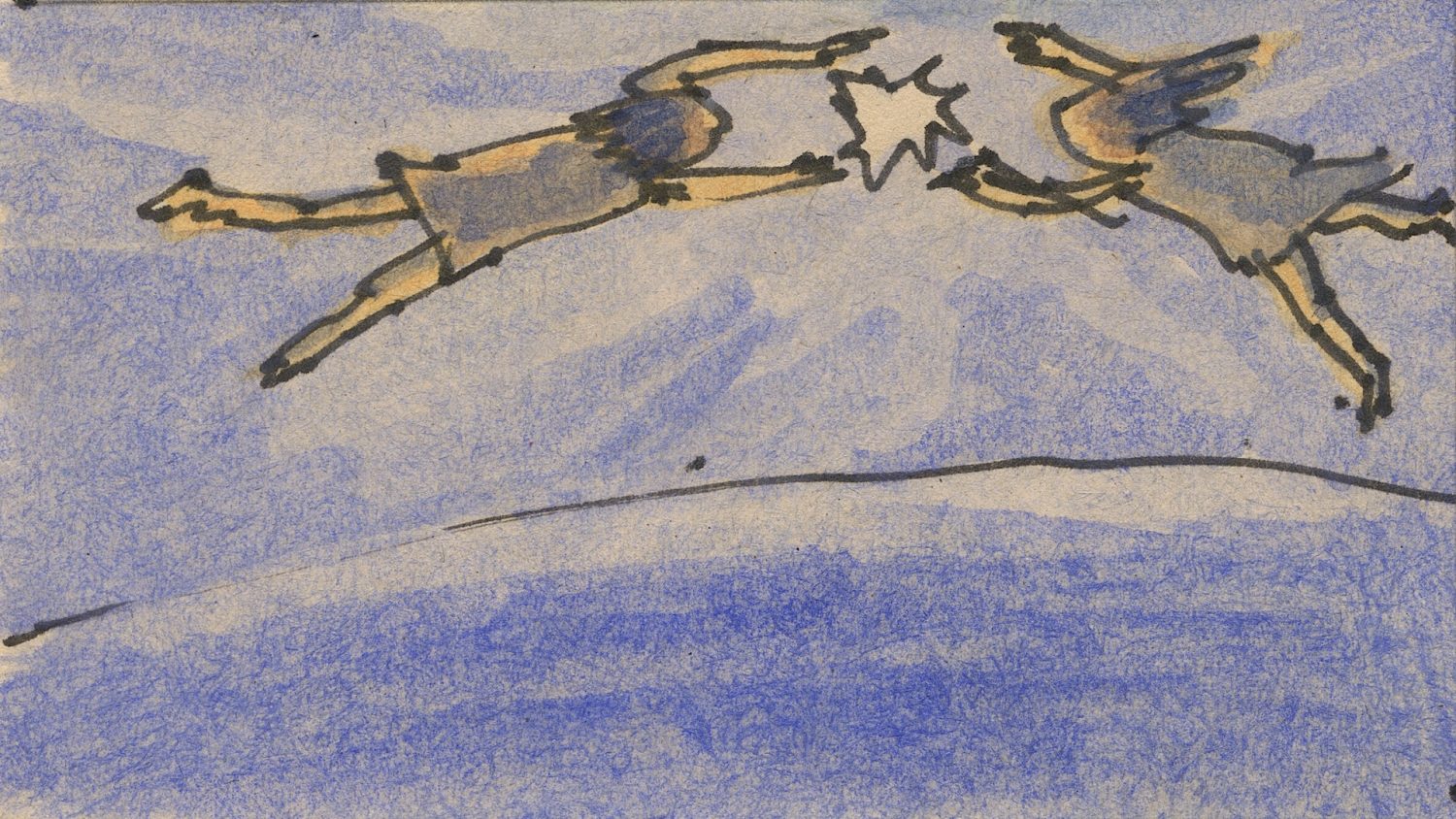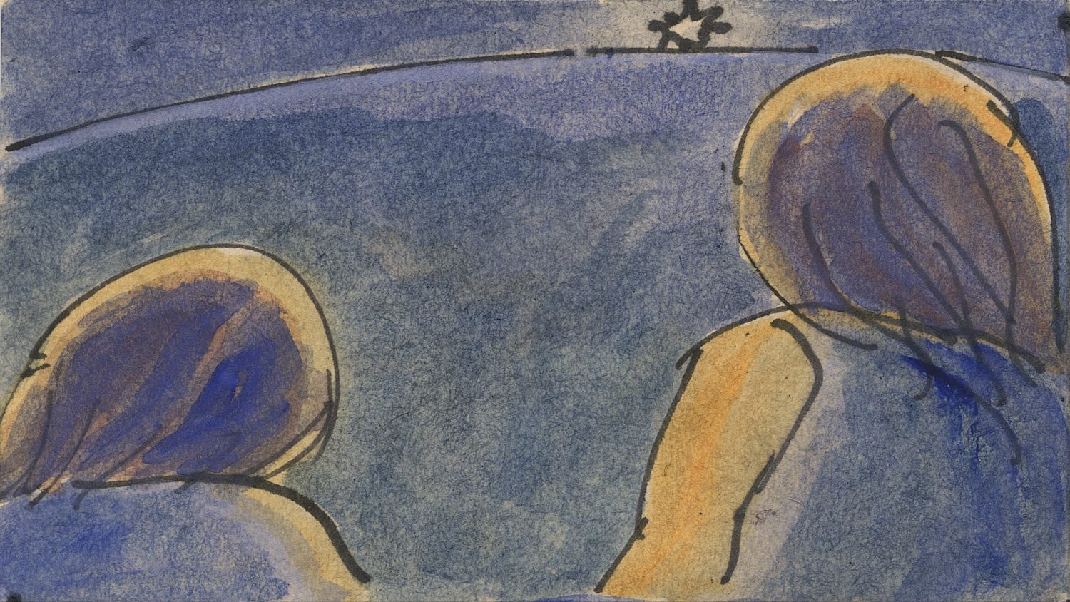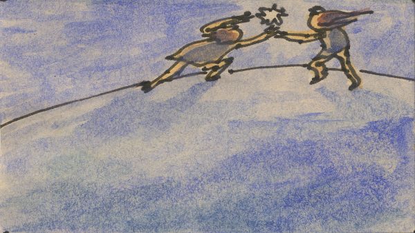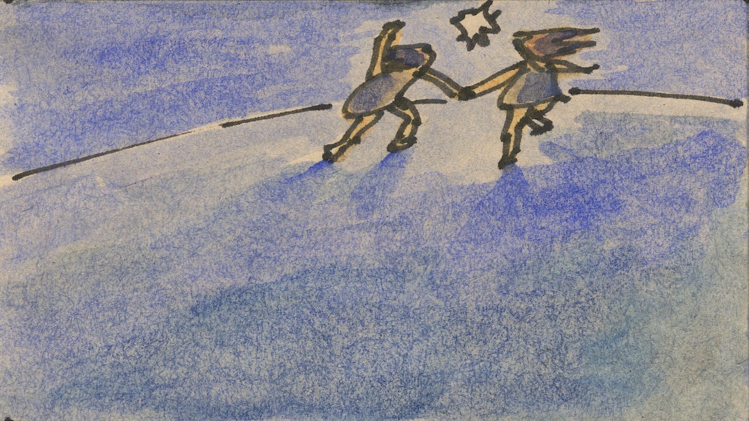 アルバム『YONA』のジャケットのために、鉛筆とパステルで52枚の鳥のようなオバケの画を描き、それをアニメーションにするために、それぞれの絵と絵の間をつなぐ動画を、鉛筆で描いきました。そのとき、紙をみるのではなくビデオでモニターして反転させた画像をみながら描いていった、ドローイング・アニメーション作品『52 Specters』でもあります。