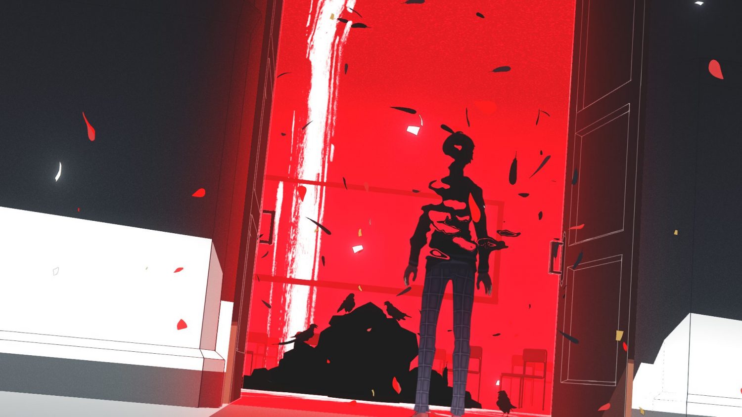霧の学校を舞台に、狂気と冷静の間で揺れる本編主人公を描いたOP。