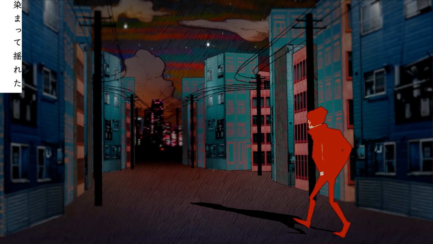 静かに横たわっていると妖精が背骨から生まれ、記憶と夜の街を溶かしていく。切り絵アニメーションによる映像作品。