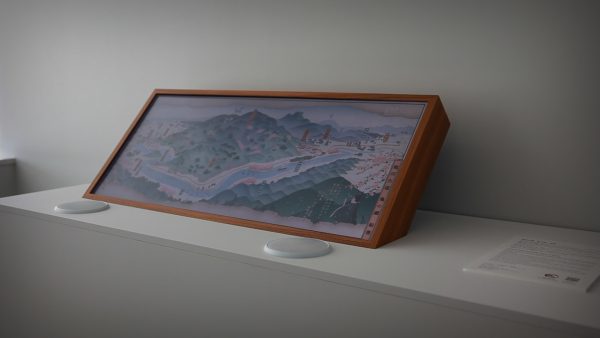 屏風に描かれた当時の合戦風景に、現在も古戦場跡に残る自然風景を重ね、アニメーションとして再構成した。工芸品のように緻密なピクセルアニメーションに、大型モニターと指向性スピーカーをそれぞれ6台使用し、空間的に構成された映像装置。絵画でありながら同時に彫刻的、空間的な装置であった屏風を現代的に再表現している。