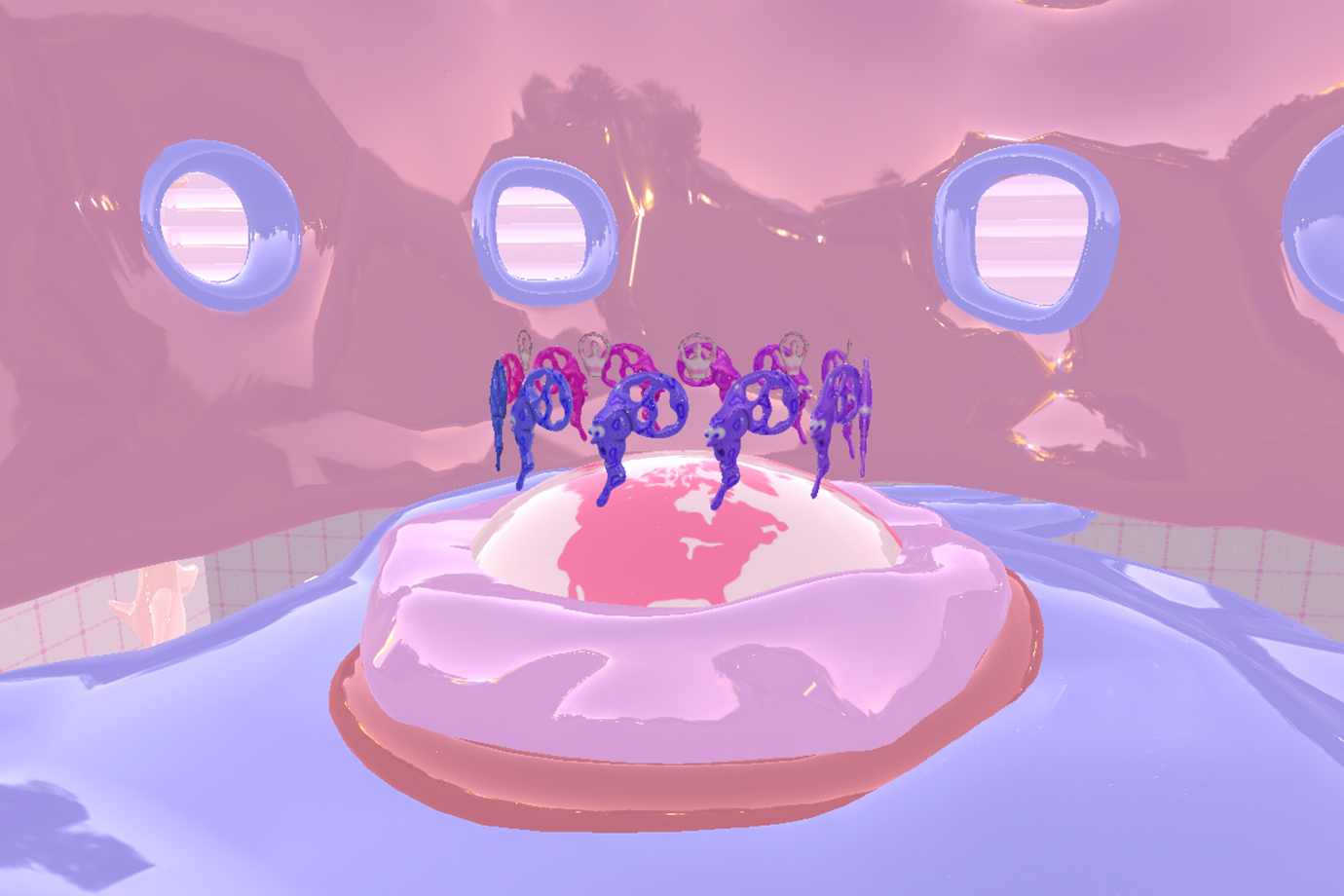 中心にあるガラスの木を見ることで心が安らぎ、この世界に暮らす生き物は温厚で怒りとは無縁の生活する。どの生き物もそれぞれ孤独な部分があり自分の時間を大切にし、自らと向かい合い輝ける未来を想像しています。