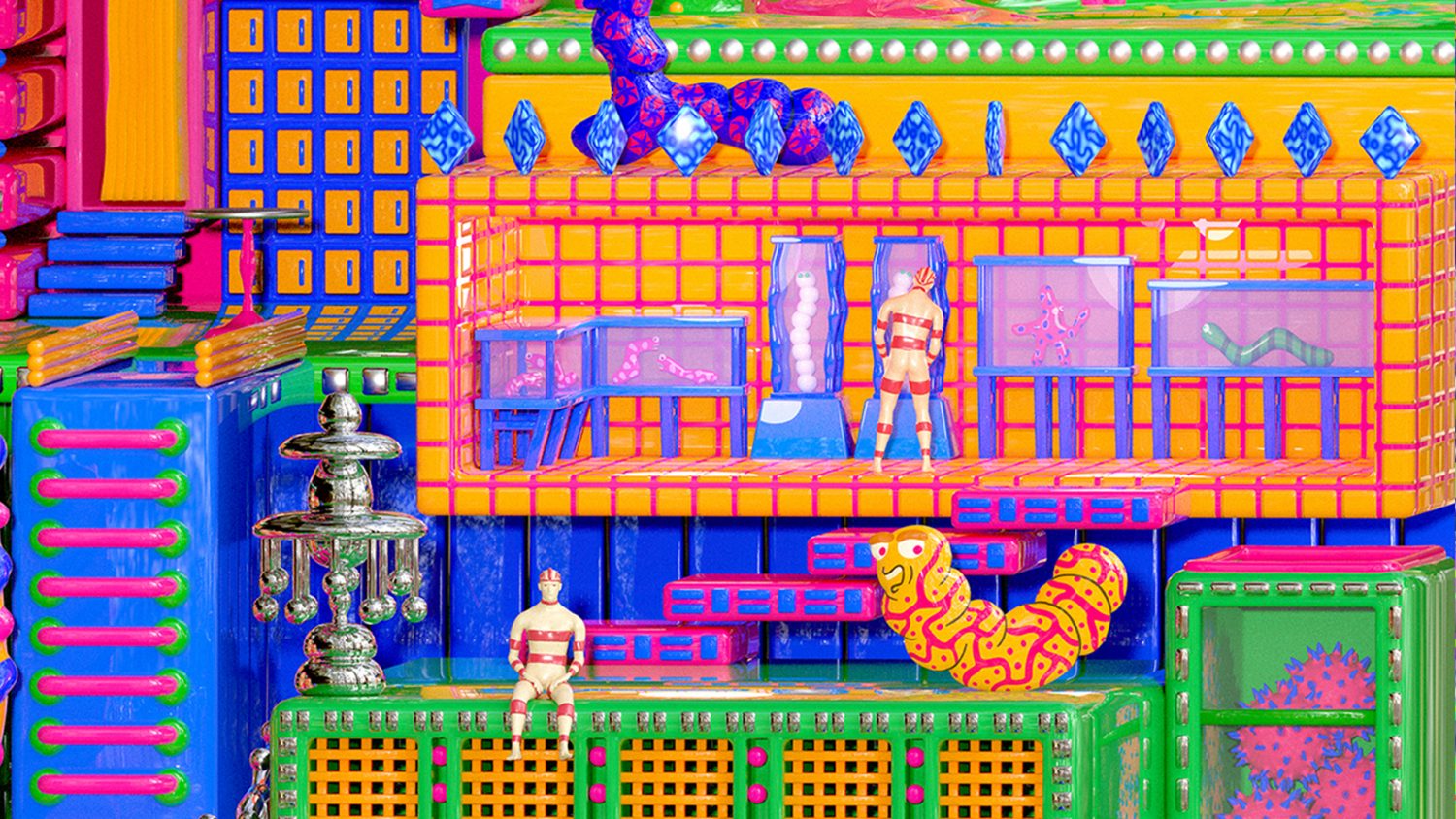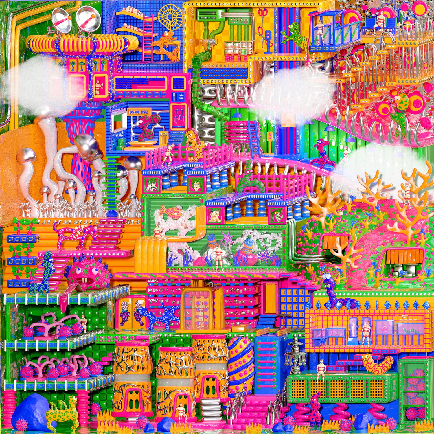 ONBDとの共同プロジェクト"THE BURNOUT SOCIETY"にて発表したGIFのNFT作品。 題材がバーンアウト症候群なのでメンタルヘルスを考え制作。 中心にあるガラスの木を見ることで心が安らぎ、この世界に暮らす生き物は温厚で怒りとは無縁の生活する。どの生き物もそれぞれ孤独な部分があり自分の時間を大切にし、自らと向かい合い輝ける未来を想像しています。 緊縛、ロープアートを展示している箇所がある。そこでは観覧者が感じるアートとしての側面と緊縛者当人の幸福感や支配欲の充実を表す。 GIF
