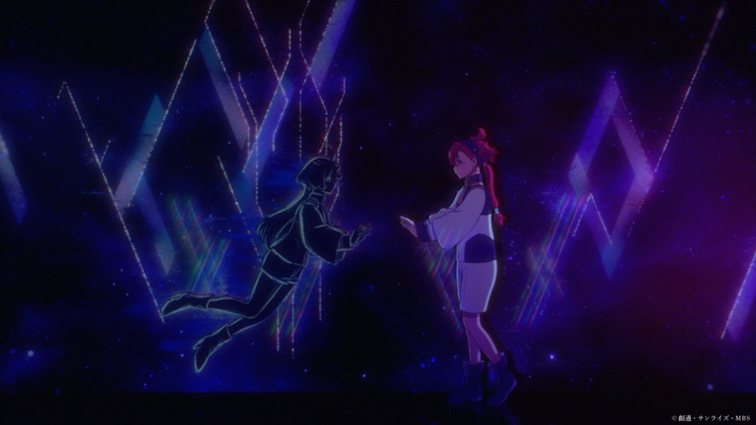 2022年10月~12月にかけて放送される「機動戦士ガンダム 水星の魔女」のエンディングアニメーション。本作はガンダムシリーズ初の学園物。劇中に登場する二人の人物は、水星から編入してきた少女スレッタ。もう一方はモビルスーツ開発企業グループ総裁の娘であるミオリネとの関係性を、コックピットや学園といった箱庭的空間、そして互いに抱える呪縛を、”魔女”というモチーフから連想して鏡や結界、それらのイメージをより象徴的に描くため鉱物をメタファーにして反射・屈折した空間で表現している。