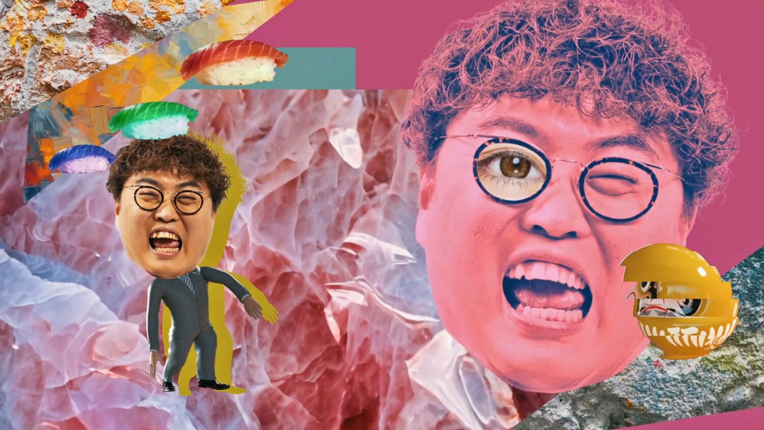 3DCGComedyTV 有吉弘之の脱法TV OP 2023 00:00:18 法の抜け穴をかいくぐるような映像にしたい というテーマを頂いたので、 その中でビジュアルの面白さを意識しつつ制作しました。 かなり怪しいオープニングにできたと思っています。
